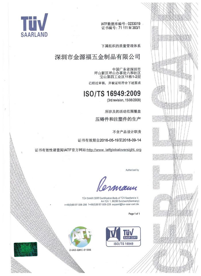 我們還通過(guò)了ISO/TS16949國(guó)際標(biāo)準(zhǔn)質(zhì)量體系認(rèn)證。